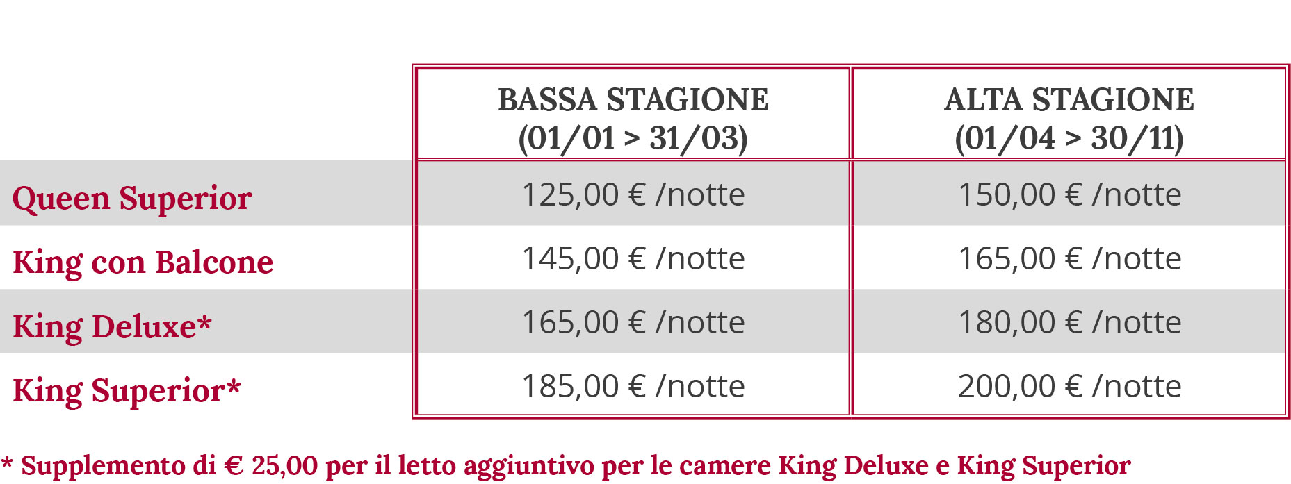 Il pernottamento presso la nostra struttura prevede gratuitamente